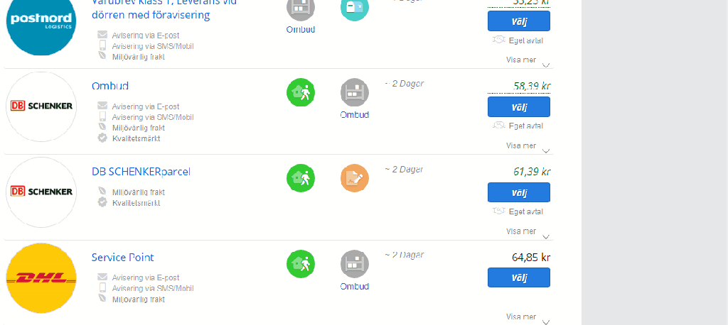 Tips: För muspekaren över priset för en detaljerad beskrivning av hur vi räknat och vilken prisinformation vi hämtat från fraktbolagen.
