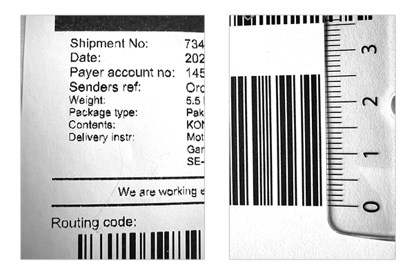 Streckkoder ska vara skarpa, mörka och rena. Utskriften ska inte vara grå, randig eller utsmetad. - Provskanna streckkoden